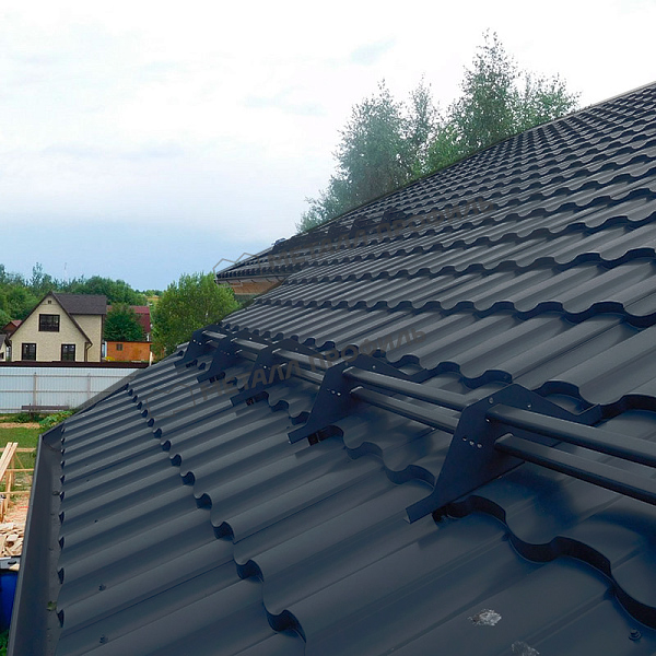 Профиль Монтекристо-SL характеризуется симметричной волной высотой 25 мм и шагом 350 мм, что имитирует натуральную черепицу. Толщина стали 0,5 мм обеспечивает оптимальный баланс между весом и прочностью, делая монтаж простым и быстрым. Такой дизайн способствует эффективному отводу воды и снега, предотвращая накопление осадков. В цвете серый графит профиль выглядит элегантно и современно, подходя для различных архитектурных стилей.