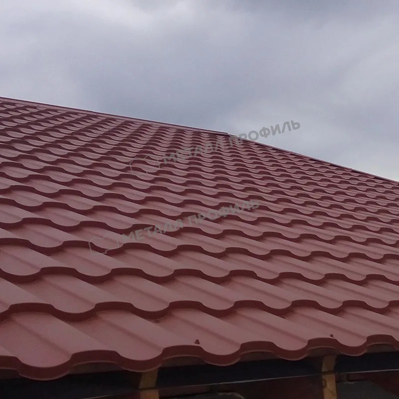 Профиль Монтекристо-X характеризуется симметричными волнами высотой 25 мм и шагом 350 мм, что создает эффект натуральной керамической черепицы. Толщина металла 0,5 мм обеспечивает оптимальный баланс между прочностью и весом. Этот профиль легко монтируется, минимизируя отходы, и подходит для крыш с уклоном от 12 градусов.