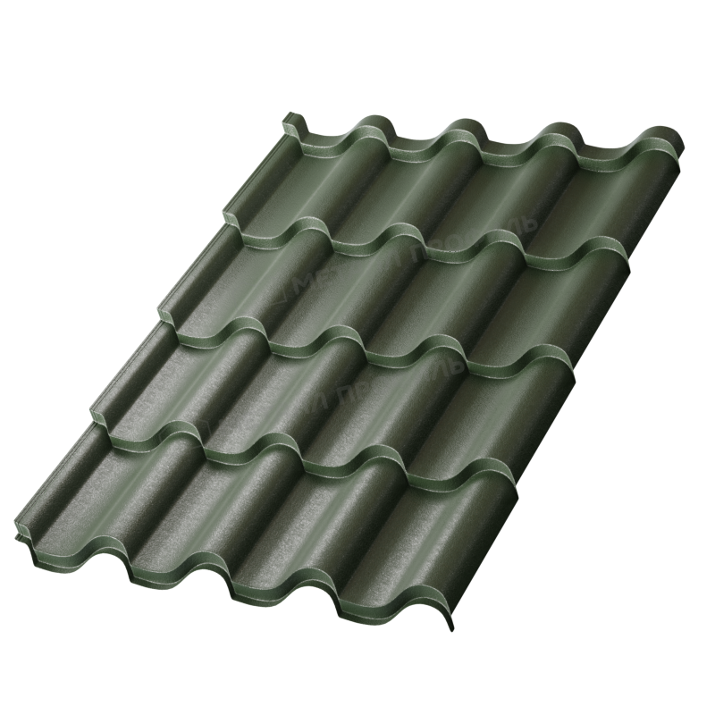 Профиль Монтерроса-S характеризуется симметричной волной, имитирующей натуральную черепицу с плавными изгибами. Высота волны составляет 25 мм, что обеспечивает отличную жесткость и устойчивость к снеговым нагрузкам. Ширина листа — 1190 мм (полезная — 1100 мм), что упрощает монтаж и минимизирует отходы. Этот профиль адаптирован для скатных крыш с углом наклона от 12 градусов, предотвращая скопление влаги. В бутылочно-зеленом цвете профиль выглядит естественно, словно продолжение лесного пейзажа, и подходит для регионов с влажным климатом.