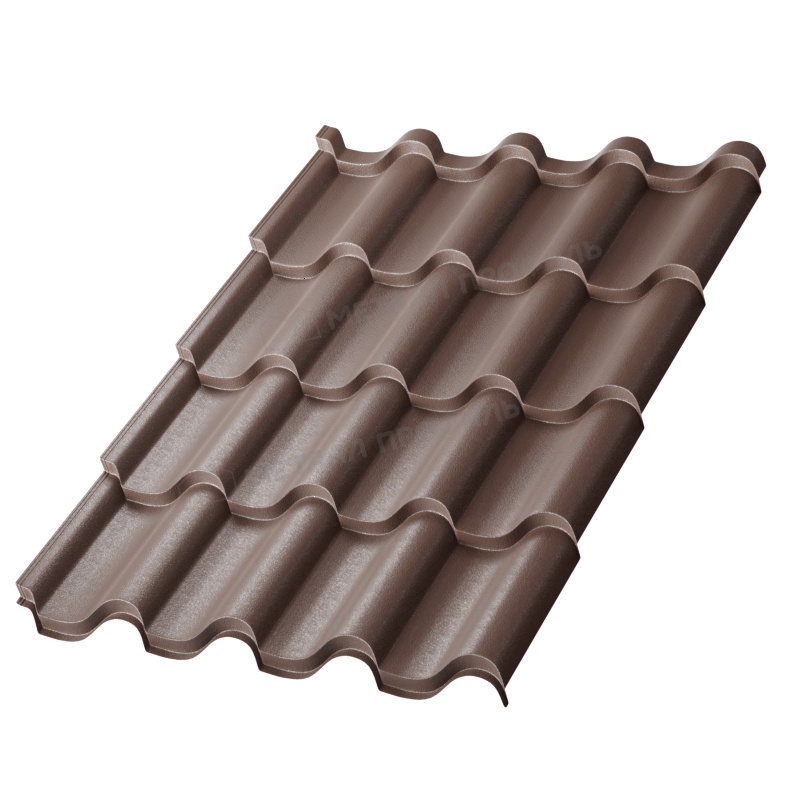 Профиль Монтерроса-S имитирует классическую керамическую черепицу с плавными волнами и симметричным дизайном. Высота волны составляет 45 мм, что придает крыше объемный и элегантный вид. Ширина листа — 1190 мм (полезная 1100 мм), длина нарезается под заказ. Это позволяет минимизировать отходы при монтаже и обеспечивает плотное прилегание элементов.