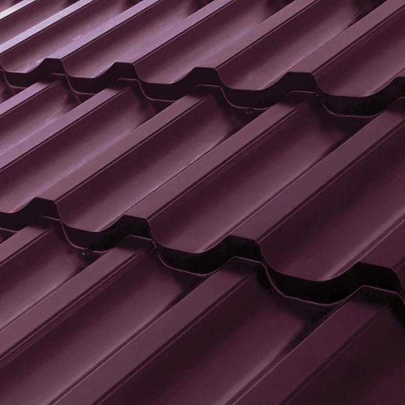 Металлочерепица Трамонтана-X от Металл-Профиль в оттенке RAL 3005 Красное вино представляет собой высококачественный кровельный материал толщиной 0,5 мм с покрытием NormanMP. Этот продукт сочетает в себе прочность металла, элегантный дизайн и долговечность, идеально подходя для современных крыш. Он обеспечивает надежную защиту от атмосферных воздействий, придавая зданию изысканный вид в насыщенном винном цвете.