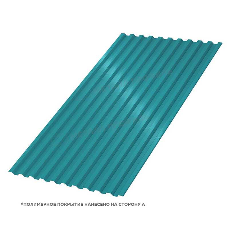 Профлист Металл-Профиль С-21 с полиэстеровым покрытием толщиной 0.4 мм в цвете RAL 5021 "Синяя вода" представляет собой надежный материал для кровли, заборов и фасадов. Он сочетает прочность стали с эстетичным внешним видом, обеспечивая долговечность и защиту от коррозии. Идеален для строительства в различных климатических условиях.